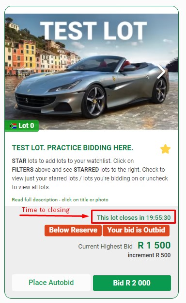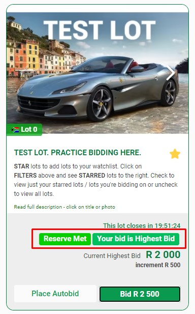 Once you place a bid, your bid status is shown. Your bid status updates if you are over reserve or outbid. You may be immediately outbid by another bidders Autobid.