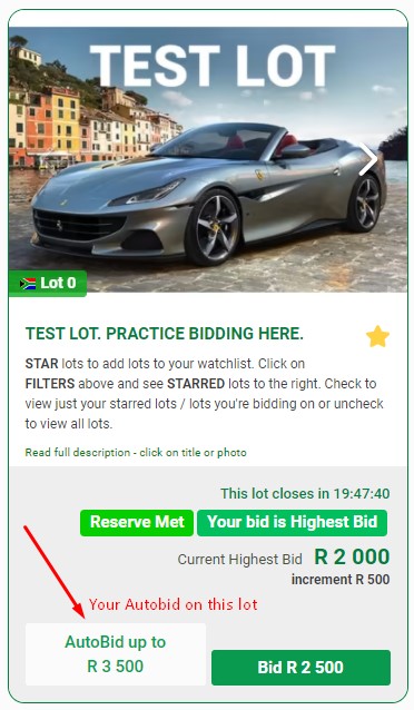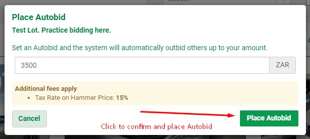If you place Autobids (A), the system will bid up to your amounts during Live auction closing, on your behalf.