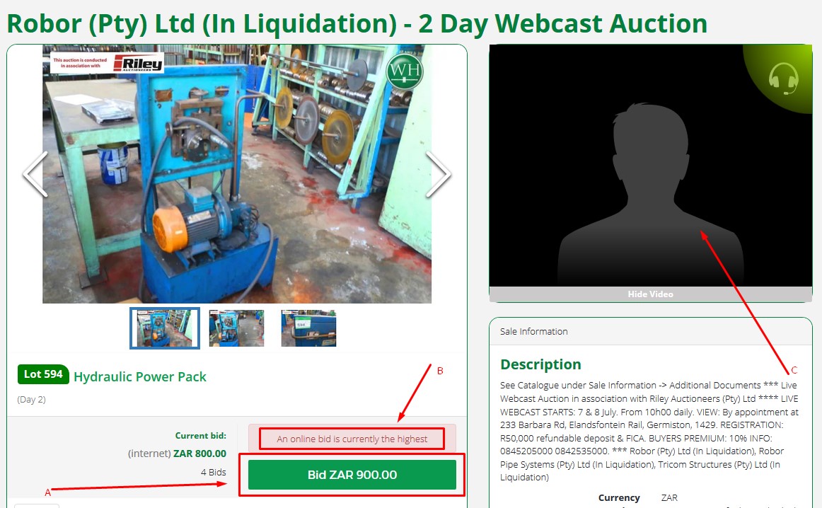 The Webcast pre-bidding phase is the time before the auction Webcast starts with the auctioneer feed. During pre-bidding you are able to place Incremental bids or Autobids on lots.